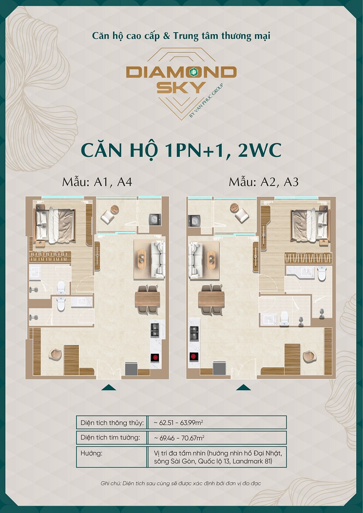 Căn hộ Vạn Phúc Diamond Sky đều sở hữu view đẹp ôm trọn hồ Đại Nhật 16ha, sông Sài Gòn, Quận Nhất – Thủ Thiêm…các căn hộ được thiết kế tối ưu từng chi tiết để mang đến không gian sống thoải mái cho gia chủ.