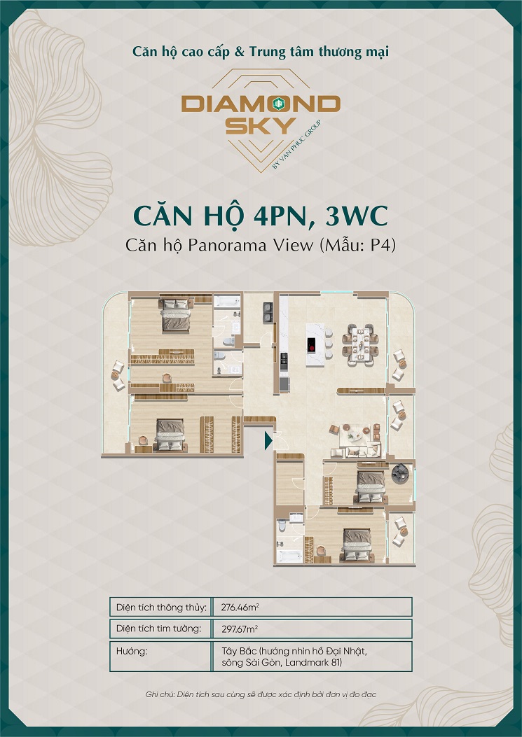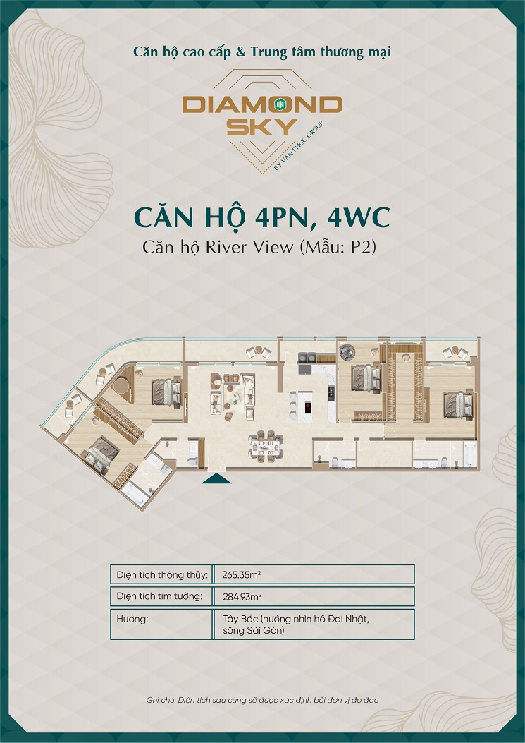 | Diện tích: | 1PN (60-64m²), 2PN (94-96m²), 3PN (127-159m²), Penthouse (192-346m²). |