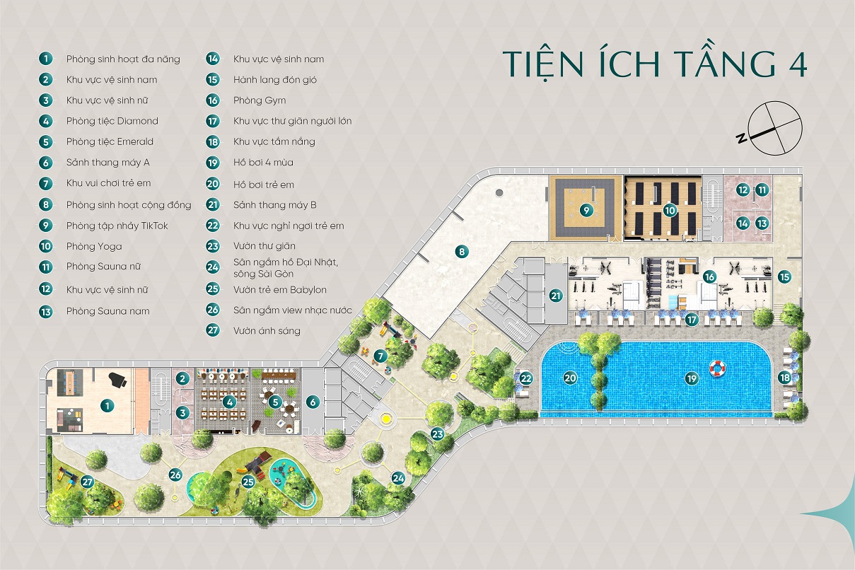 Ngoài ra hệ thống tiện ích nội khu căn hộ Diamond Sky giúp mang tới cuộc sống tiện nghi hoàn hảo cho cư dân ngay ngưỡng cửa: Trung tâm thương mại, hồ bơi nước ấm, BBQ ngoài trời, sân pickleball nội khu, phòng gym hiện đại…